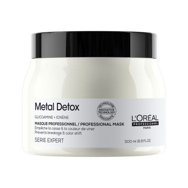 Επαγγελματική σύνθεση για την προστασία από τα μεταλλικά στοιχεία για μαλλιά που έχουν υποστεί επεξεργασία χρώματος. Εμπλουτισμένο με Γλυκοαμίνη, το κρεμώδες Serie Expert Metal Detox Σαμπουάν απομακρύνει τα μετάλλικα στοιχεία στο εσωτερικό της τρίχας και αποτοξινώνει τα μαλλιά, προσφέροντας τους ελαστικότητα, ανθεκτικότητα, έως και 87% λιγότερο σπάσιμο, 100% αξιόπιστο αποτέλεσμα χρώματος και λάμψη.