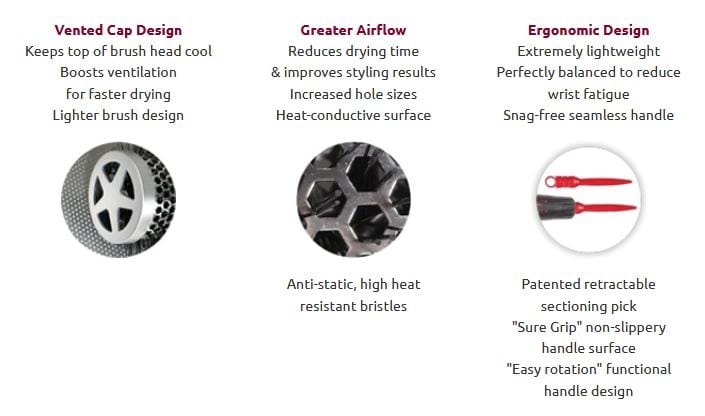 Ελαφριά, θερμική βούρτσα με αντιστατικές τρίχες για ταχύτερο & πιο σταθερό styling